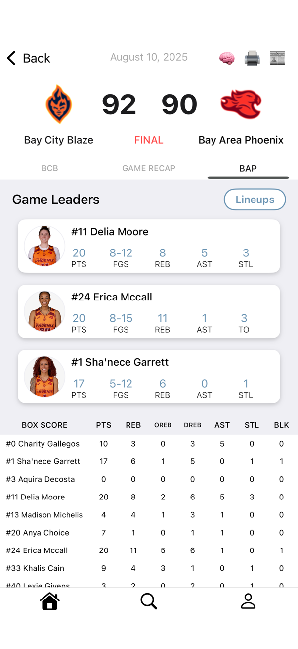 Instant box scores, game recaps, and shareable links. Your game, documented forever.
