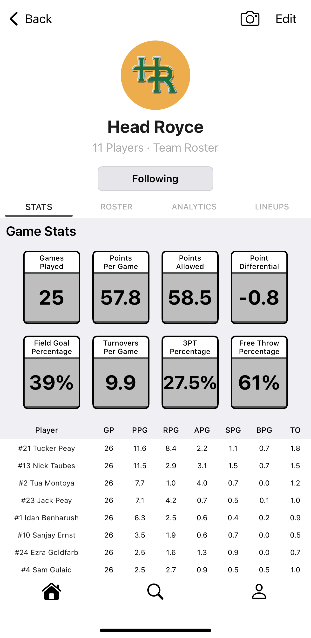 Intuitive interface – tap a player, tap the action. 2-pointer, 3-pointer, free throw, rebound, assist. Done.